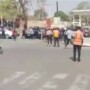Eyewitnesses said the situation quickly escalated when the workers spotted the minister’s convoy attempting to leave the compound. In a dramatic turn, the protesters surged forward, chasing the convoy and hurling verbal attacks while security operatives struggled to contain the crowd.